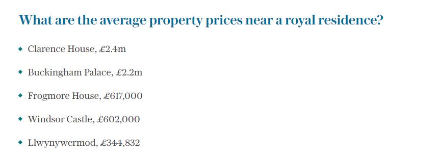 实际上,不仅王室拥有高额的房产财富,在“王室效应”影响下,王室住所周边的房产价值也是水涨船高。