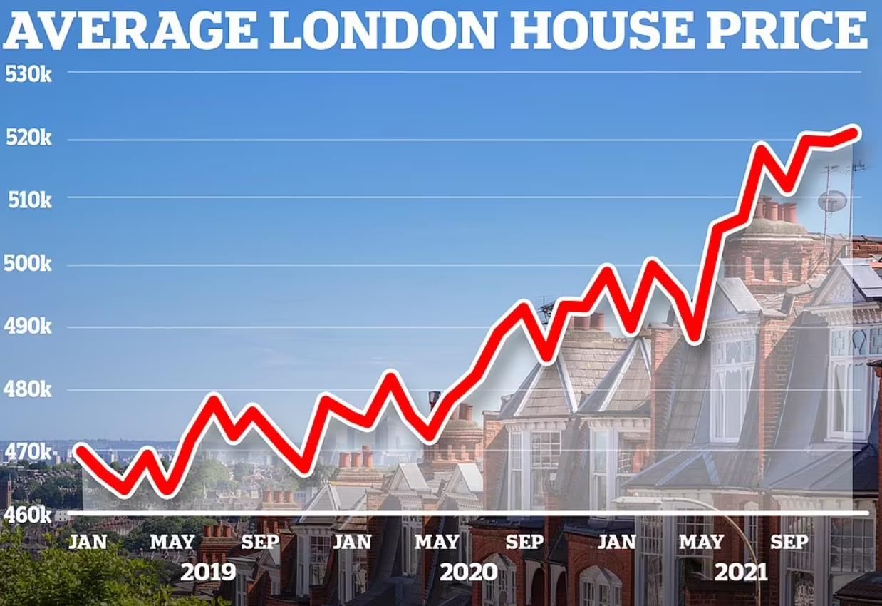 本周,英国官方数据出炉,结果显示,2021年,伦敦房价平均上涨5.5%,达到了521,146英镑的历史新高,房产均价几乎是英国均价274,712英镑的近两倍!