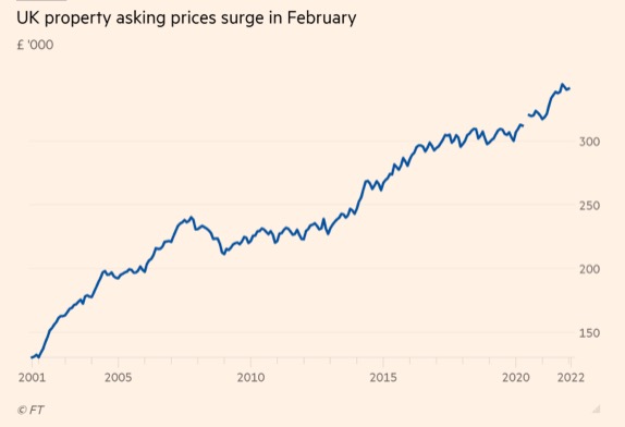 - Rightmove数据显示:2021年的房产市场是过去21年以来最繁忙的一年,其税前利润增长了三分之二。今年1月-2月,英国房价上涨7,800镑!