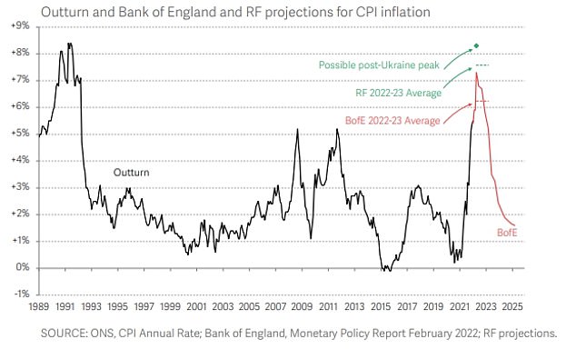 - 俄乌冲突导致英国能源价格上涨,英国大臣警告说:50年前的能源价格危机将会重演。当时通胀率达到23%,利率达到17%。