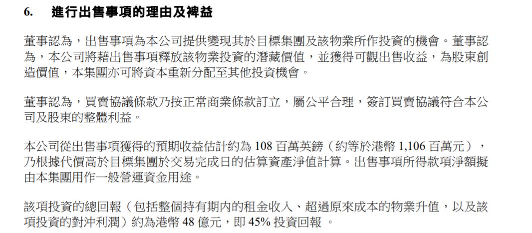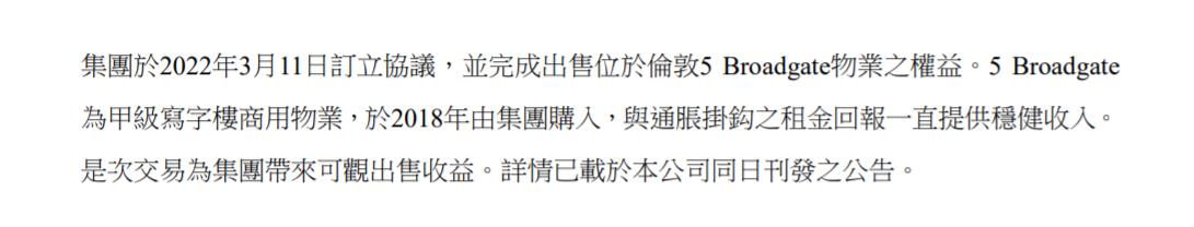 而值得一提的是,在此次业绩报告中,长实再次提到了伦敦金融城写字大楼5 Broadgate的出售,并表示,该大楼出售完成后,将为长实带来可观的收益,预计获利1.08亿英镑。