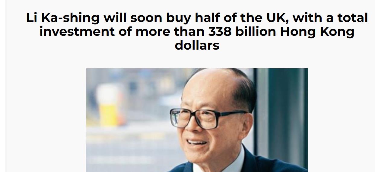 从地产到基建,从电信到酒吧,从港口到水利……各种类型的资产应有尽有,让外媒直呼,李嘉诚要买下半个英国了!