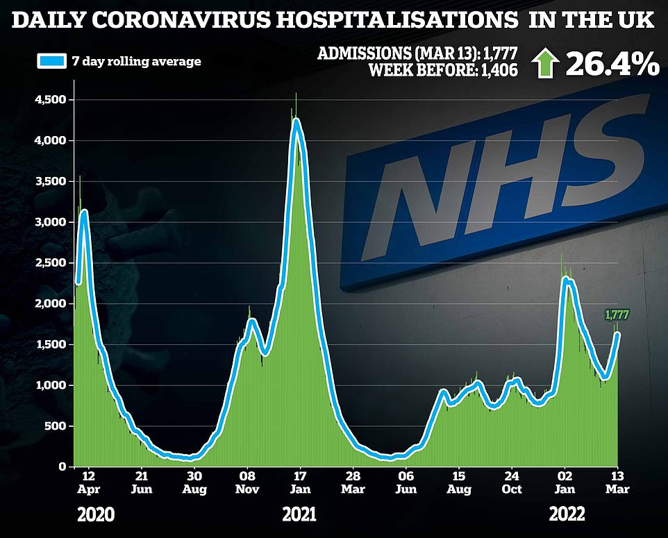 截至3月13日,新增入院1,777人,较上周同一时间上涨26.4%。