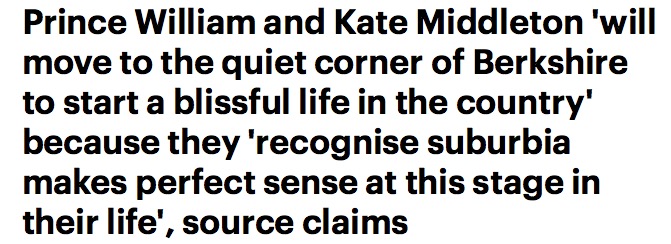 消息人士指出——威廉王子和凯特王妃想要搬家到伯克郡(Berkshire),因为他们觉得在生活的这个阶段,伯克郡的郊外更适合自己。