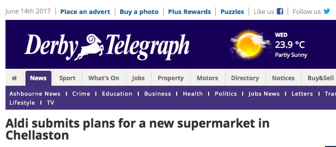 Aldi集团表示,要在Chellaston地区新建一个超市。