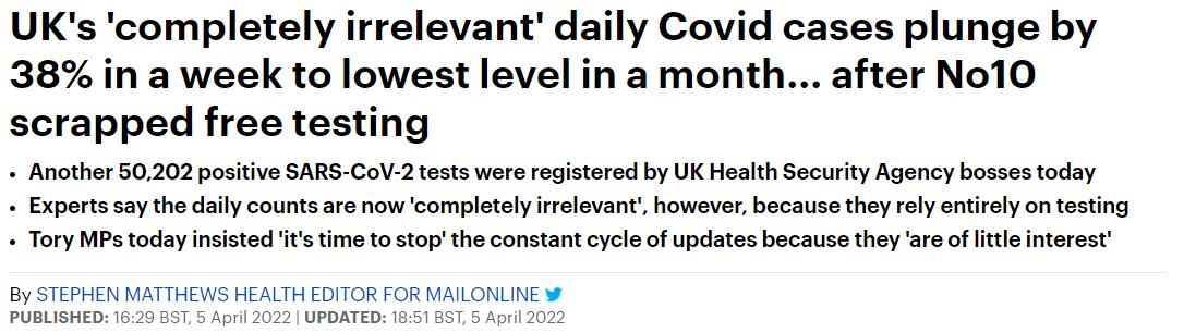英国政府取消免费的新冠检测,新冠单日新增降至一个月来的最低水平,专家称,目前的每日感染数据已无参考价值…