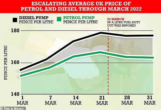 数据还显示,到3月底,一箱汽油(55升)的平均成本上涨至89.80英镑,比月初高出6.38英镑,比一年前高出21.93英镑,涨幅近三分之一。