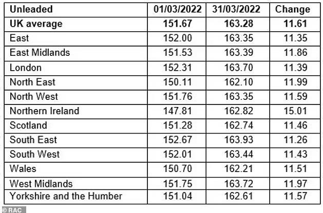 对Experian Catalist数据的分析发现,从3月初到月底,一升汽油的平均成本上涨11.6便士,价格在3月31日达到每升163.3便士。