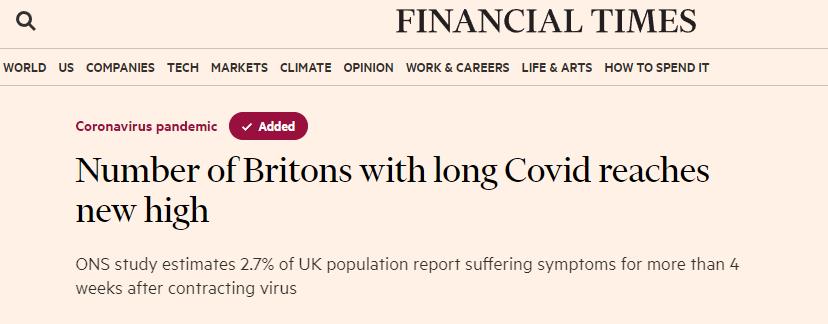 英国患有长期新冠症状的人数达到了新高,170万人在感染或疑似感染后出现持续超过4周的症状…