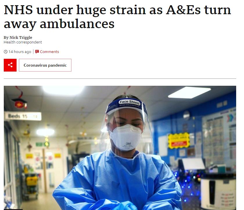 据媒体报道,英国NHS医院正面临着前所未有的就诊压力,一些医院已经开始请求家属将感染新冠的病人带回家以腾出床位。