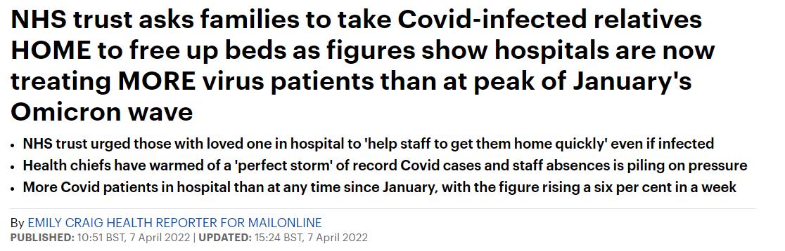 虽然这些患者中有一半以上的人是“偶然性新冠病例”,也就是说因其他原因住院时恰好也确诊感染了新冠,但毫无疑问,需要隔离的新冠住院者的增多,加上各类积压病例,意味着NHS比1月高峰时还要忙碌。