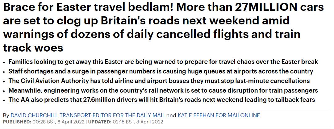 复活节马上来临,机构警告称,节日期间的交通量预计将出现大幅激增,同时。英国旅游业将受到大幅提振…