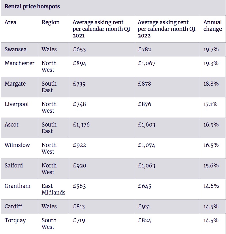 同时,曼彻斯特和利物浦也是租金增长最快的城市之一,租金分别上涨了19.3%和17.1%。