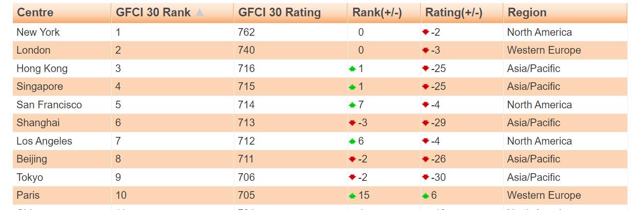 尽管有脱欧和疫情的双重冲击,但伦敦依旧牢牢地坐稳金融中心的位置,在最新发布的全球金融中心指数(GFCI)中,伦敦也仍旧是全球前两大金融中心之一。