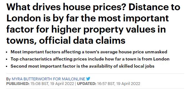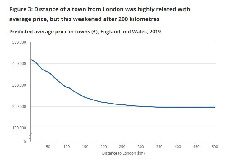 然而,当距离伦敦超过200公里(124英里)时,这一因素的影响就会减弱,距离更进一步的增加对房产价格的影响并不太大。