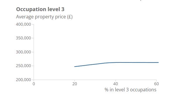 在这个因素的分析中,ONS根据“标准职业分类”中对技能的定义,确定了一个地区从事不同等级技能工作的人的比例,并研究了其与房价的关系。