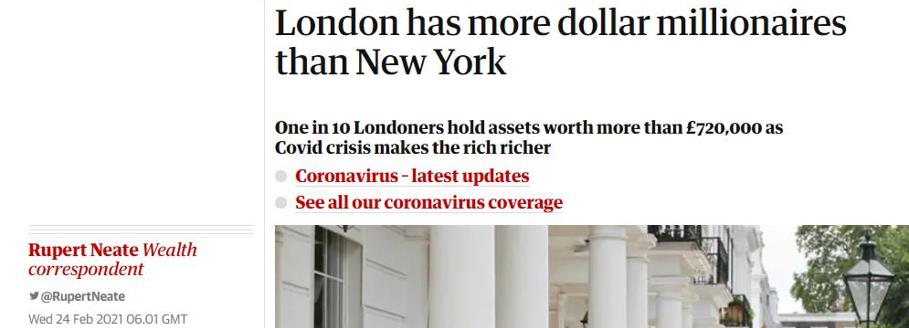 同时,伦敦还是全球高净值人士最多的城市。目前,在伦敦长期居住且净资产超过100万美元的人已经超过了87.5万人,数量位居全球首列。