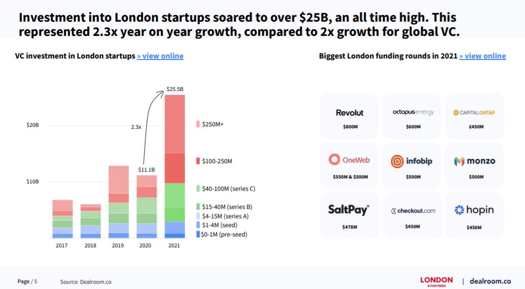 同时,2021年,伦敦的“独角兽”(估值超过10亿美元)科技公司总数也达到75家。
