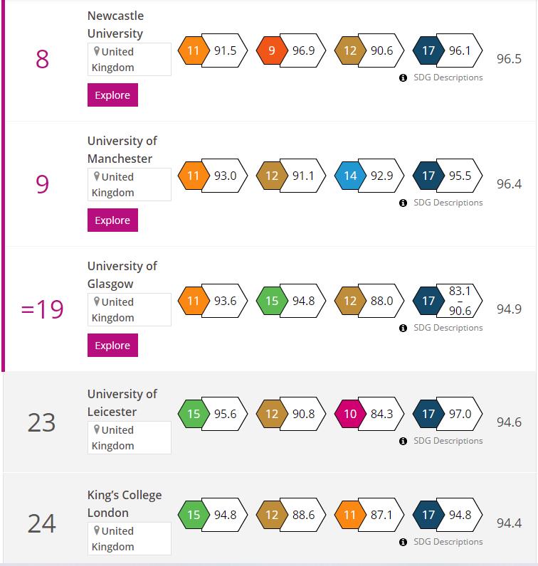 其中,英国排名第一的是纽卡斯尔大学,总得分为96.5分,名列世界第八。