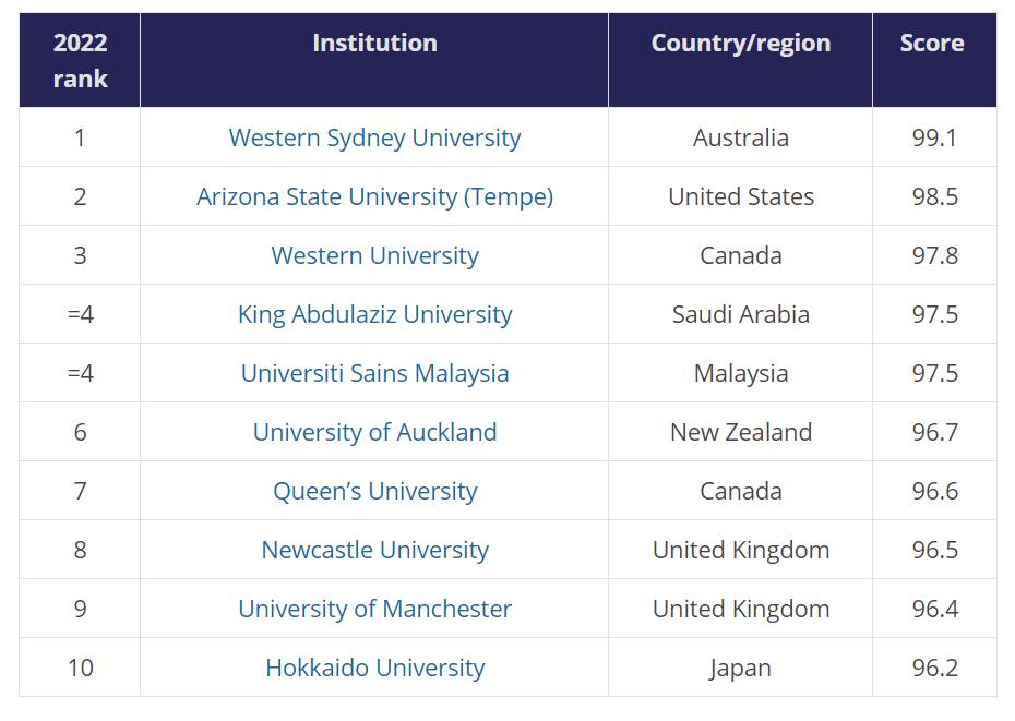 因此,该排名的建立宗旨也是向世界展示那些致力于解决性别不平等、全民优质教育、气候变化、实现和平社会和经济增长等全球问题的大学。