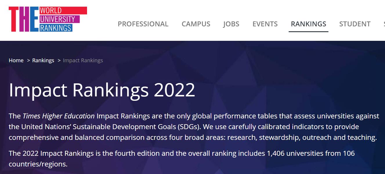 值得一提的是,THE世界大学影响力排名也是目前世界上唯一衡量大学对联合国可持续发展目标贡献的排名。