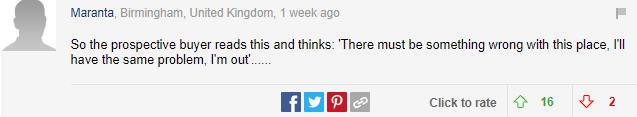 也有人认为,当潜在买家看到这里时就会想,这个地方一定有问题,因为我也会有同样的问题,所以我不喜欢它……