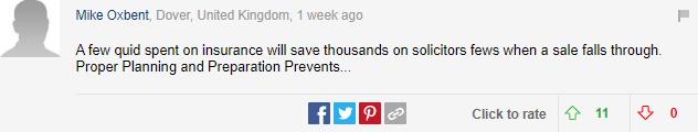 还有人建议道,在销售失败时,在保险上花一点钱就可以省下数千英镑的律师费。适当的计划和准备就能预防这些…