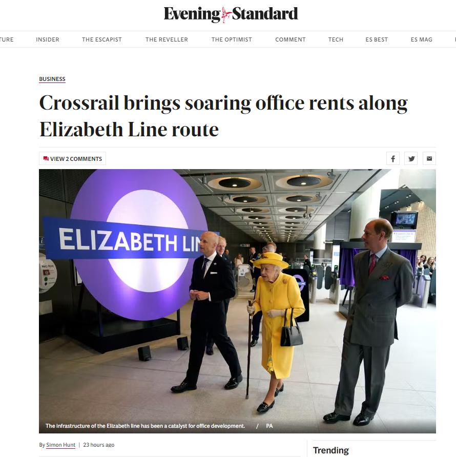 值得一提的是,由于伊丽莎白线能够大幅缩短通勤距离,整个沿线地区的办公室租金也出现了大幅飙升。