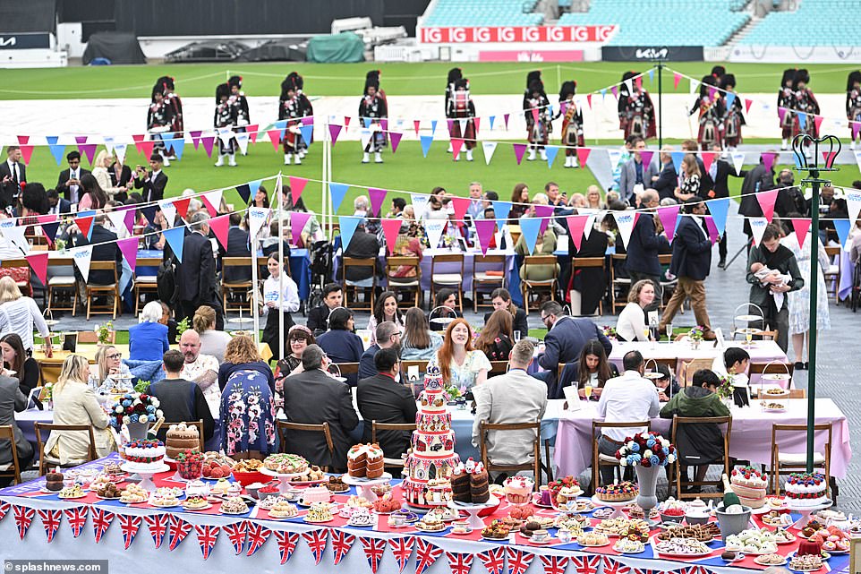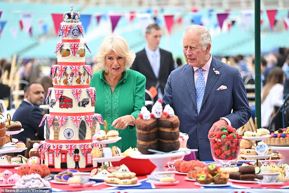 在随后举办的庆典午宴上,查尔斯王子和卡米拉亮相,这是一场数万人参加的大型午餐活动,活动现场热闹非常。