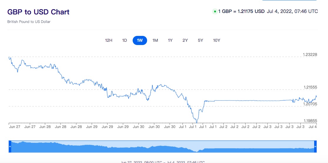 目前,英镑兑换美元汇率为1 GBP = 1.21175 USD