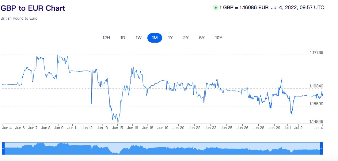 兑换欧元汇率为1 GBP = 1.16086 EUR