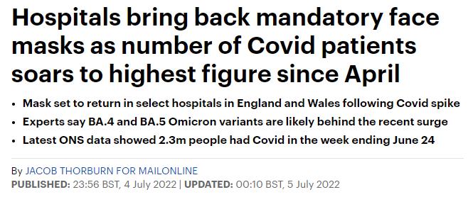 据悉,来自剑桥郡、汉普郡、诺丁汉郡、德文郡和威尔士的医疗信托机构都恢复了健康指南,敦促人们因病例激增而戴上口罩。