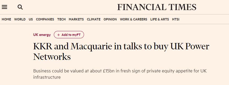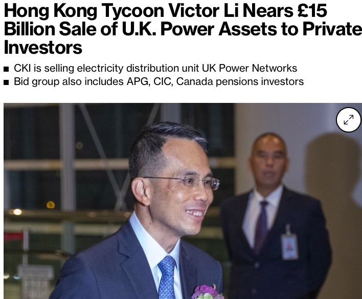 媒体还称,李嘉诚已经与多国财团进行接洽,其中,由KKR和澳大利亚麦格理牵头的财团Macquarie计划以150亿英镑的价格收购UK Power Networks。