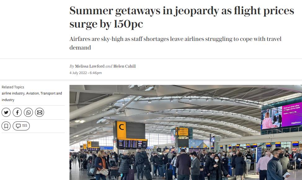 与此同时,由于旅行需求激增但供应不足,很多航空公司已经提高了价格,游客面临着更高的出行费用。