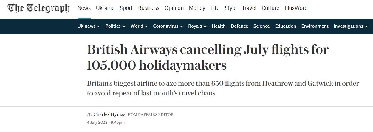 此前,英国政府要求各家航空公司审查他们的航班计划,减少“过度销售”,以匹配机场的运营能力,这也导致多家航空公司重新制定了日程安排,预计有大量航班将被迫取消。