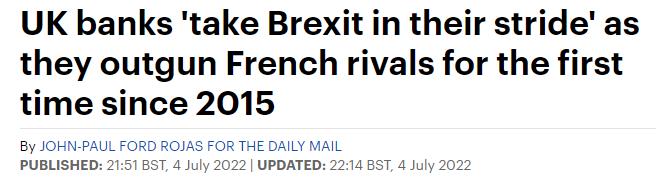 研究发现,英国金融市场并未如预期般受到脱欧冲击,银行业利润暴增,过去一年主要银行的利润总额达454亿英镑,位居欧洲第一…
