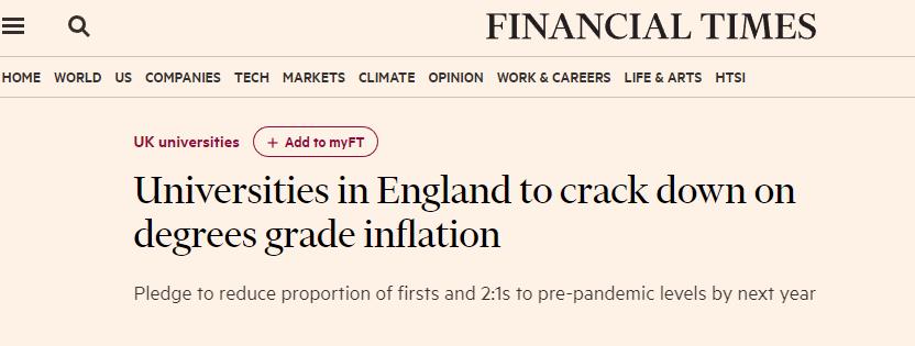 英国各所大学已承诺降低高分成绩的授予比例,扭转疫情期间高分学生增多,成绩膨胀的局面…
