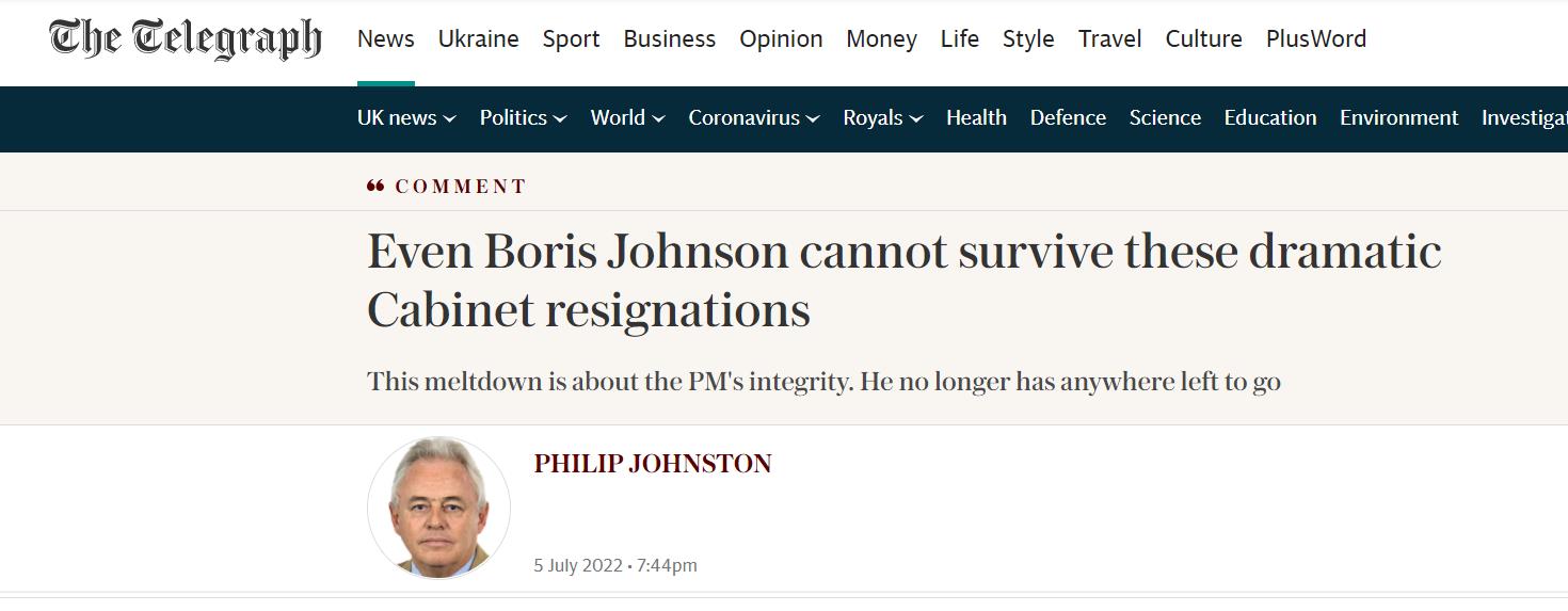 外界还认为,这不仅意味着人们对鲍里斯信任的坍塌,也意味着鲍里斯首相之路终结的开端。