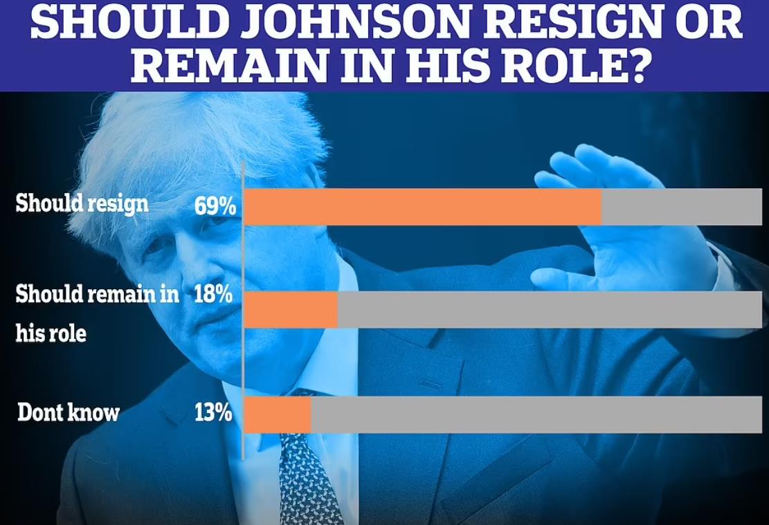 Yougov的最新民调显示,高达69%的英国民众希望鲍里斯辞职。