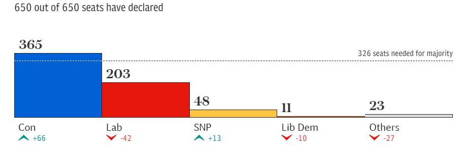 可能很多人还记得2019年的双十二大选,当时,凭借强硬的脱欧手腕和浓烈的个人风格,鲍里斯率领的保守党最终在下议院得到了365个席位,以80票的绝对多数优势获得了胜出,鲍里斯也坐稳首相之位。