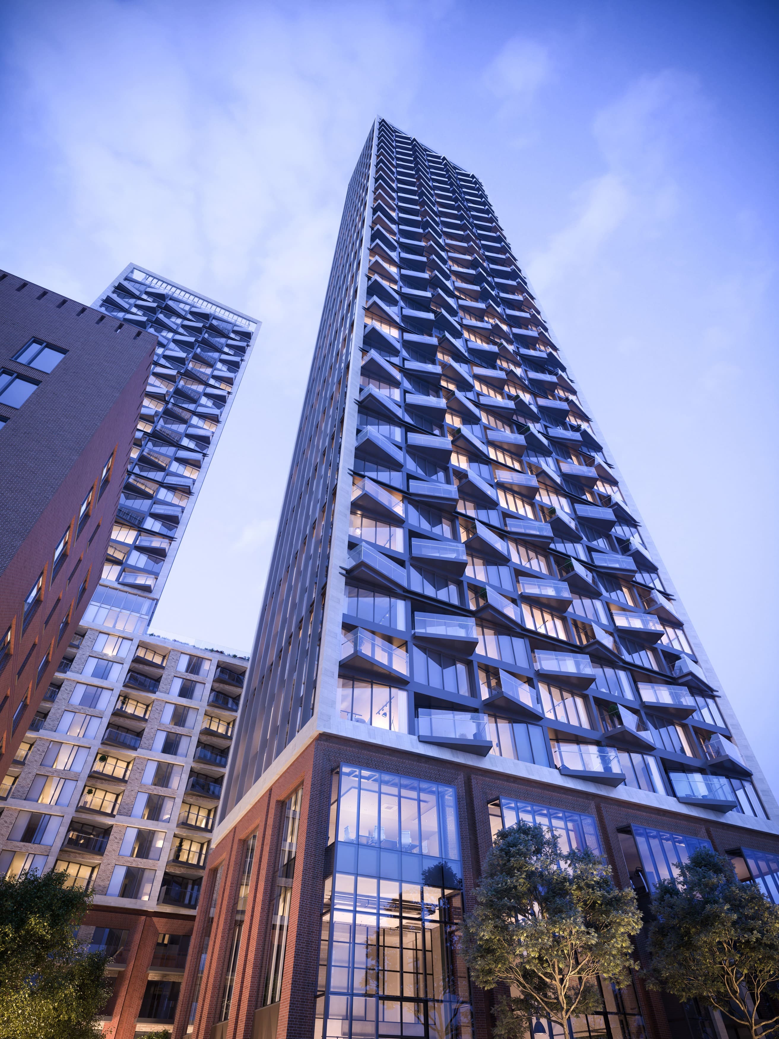 项目为伦敦西2区地标建筑,共有4栋大楼,最高的一栋54层,配有空中花园和健身房等设施。