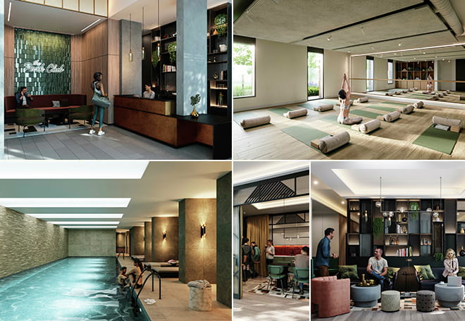 楼盘配有庭院、休息区、屋顶露台和庭院花园等。