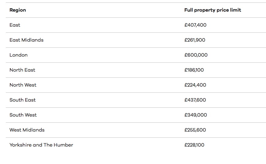 4)房产价值必须在一定金额及以下,其他地区有各自不同的标准,参考下图——伦敦地区上限60万镑。