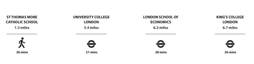 方便前往世界一流学府 UCL、 LSE, 、Kings College、 Imperial College 以及 the Royal Academy of Arts等。