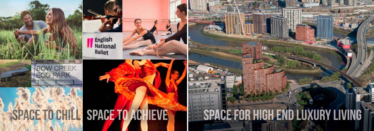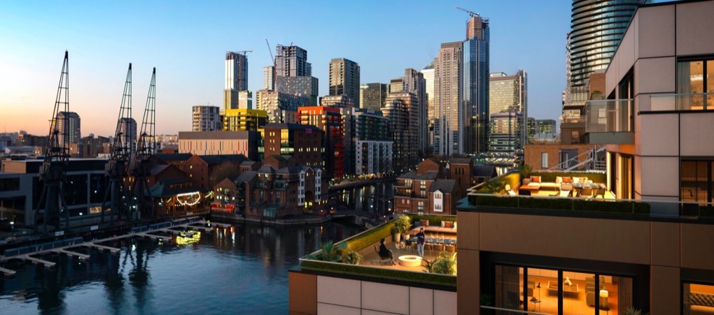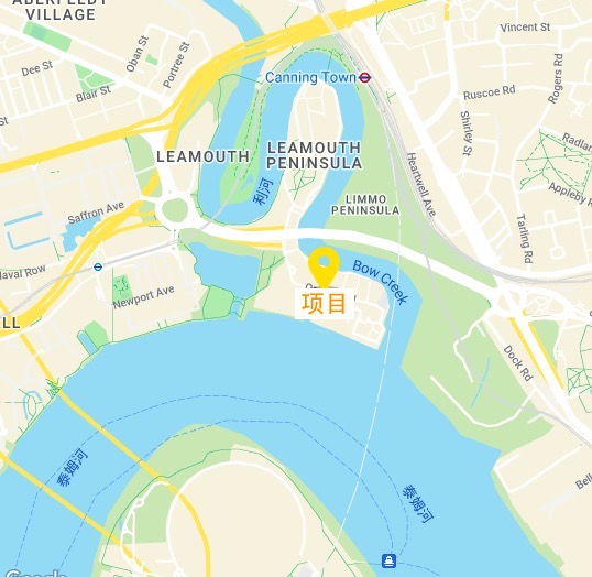 项目位于伦敦历史悠久的泰晤士河畔Leamouth半岛,距离金丝雀码头非常近,还三面环水。
