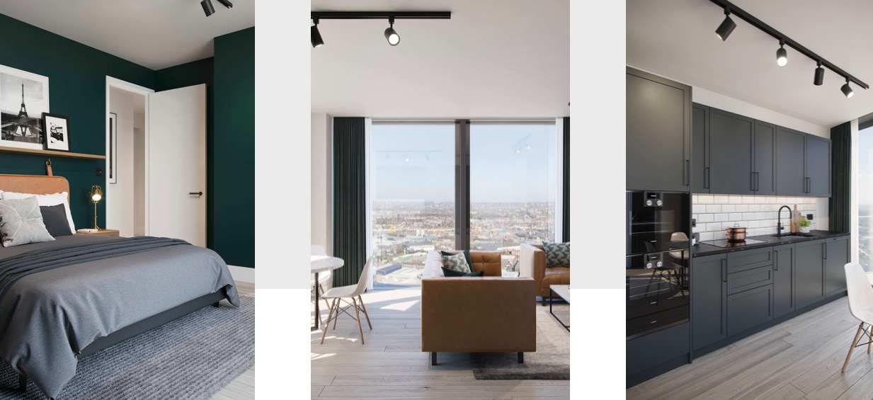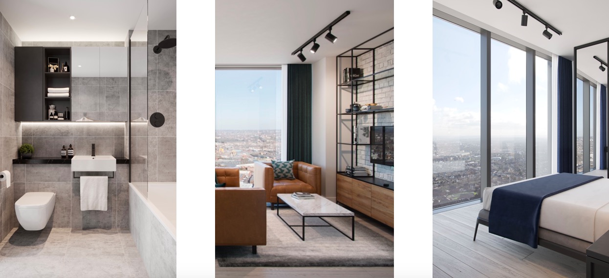 项目有1-3居室公寓可供选择,每个公寓都配有宽敞的私人阳台,很多公寓可以俯瞰整个伦敦的美景。