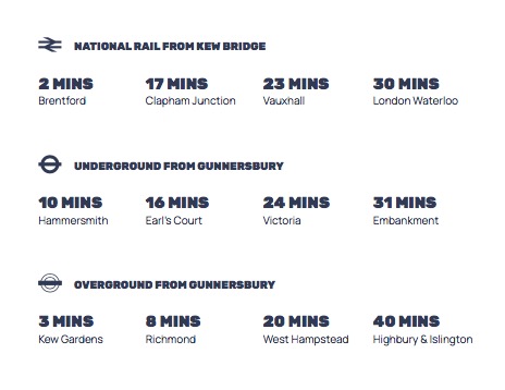 从项目驾车出发,16分钟即可到达希思罗机场。搭乘公共交通,10分钟以内即可到达里士满和Kew Garden植物园,24分钟即到维多利亚站,半小时内抵达大本钟、伦敦眼。