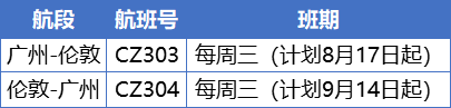 南航宣布计划从8月17日起恢复广州至伦敦的直飞航班,并计划从9月14日起恢复伦敦至广州的直飞航班;