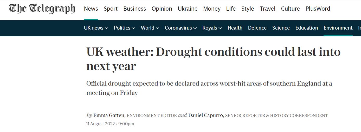 而一旦被官方定义为干旱状态,这意味着英国环境署(EA)对当地供水的限制将升至另一个级别。