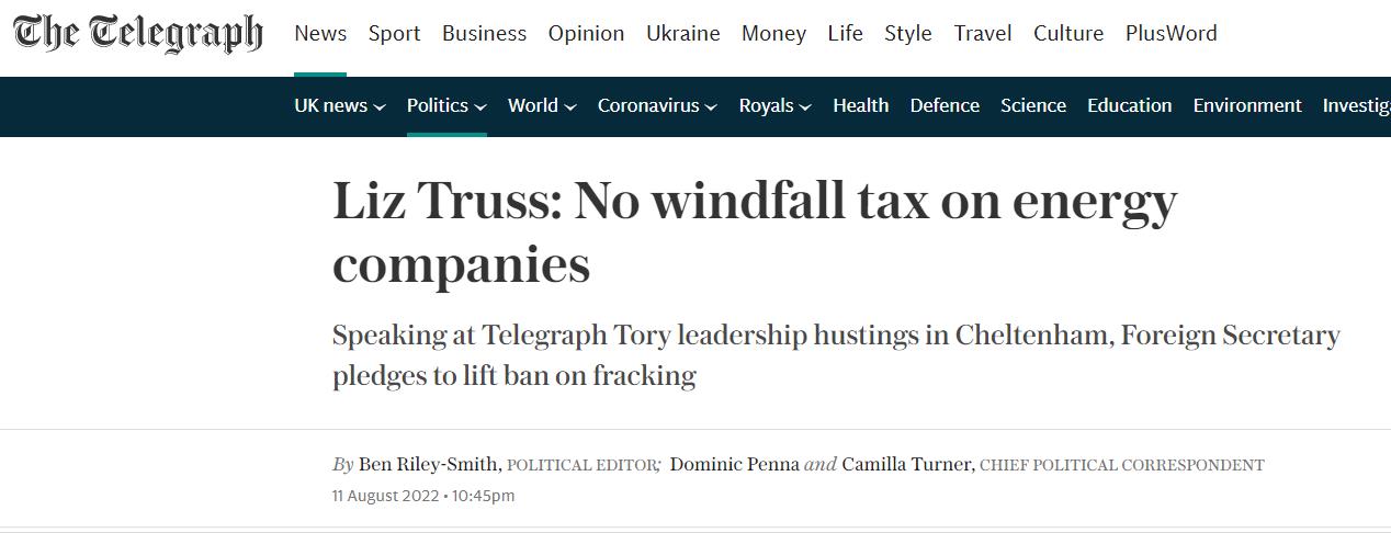 Liz Truss宣称:不会对能源公司征收暴利税,并称利润不应该被视为一个“肮脏和邪恶的词”…